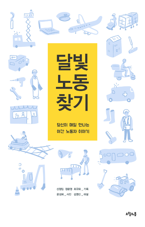 노동 전문 잡지 기사인 신정임 씨를 비롯해 모두 5명이 글을 쓰고 사진을 쓴 <달빛 노동 찾기(2019, 오월의봄)>은 한국 사회의 ‘야간 노동’을 다루고 있다. 통계조차 잡히지 않는 이 노동 형태가 어떤 모습을 띄고 있는지 알아보자는 것이다. 이들은 우체국, 대학, 방송, 병원, 공항, 교통, 교도소, 단체급식, 고속도로에서 일하는 야간 노동자를 만나 이들의 노동 환경부터 삶의 질 전체를 샅샅이 훑었다.