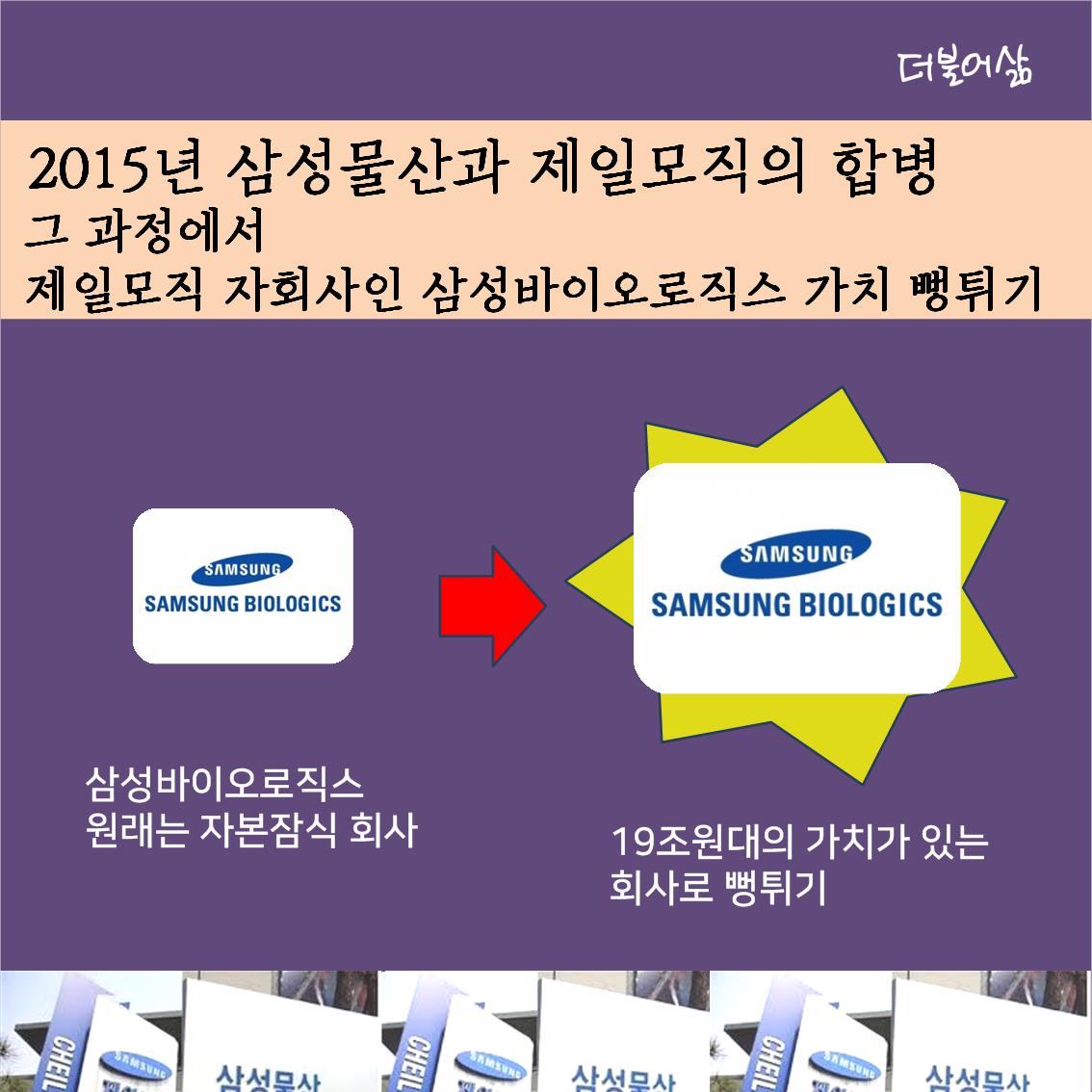 그 과정에서 제일모직 자회사인 삼성바이오로직스의 가치를 뻥튀기
