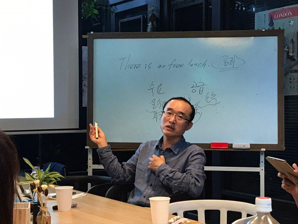 차분하게 강연을 이어가는 송기균 소장님의 모습입니다. 폭넓은 시민들을 대상으로 하는 강연이라 경제 원리에 대한 설명은 짧게 넘어가고 속도감 있게 진행을 해주셨습니다.