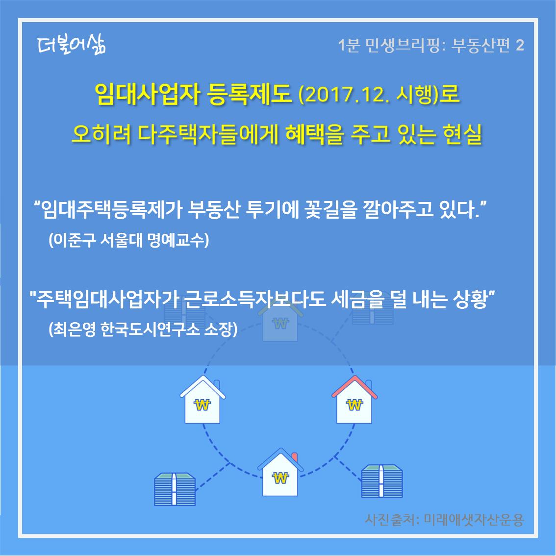 “과도한 세금 감면으로 주택임대사업자가 근로소득자보다도 세금을 덜 내는 상황” (최은영 한국도시연구소 소장)