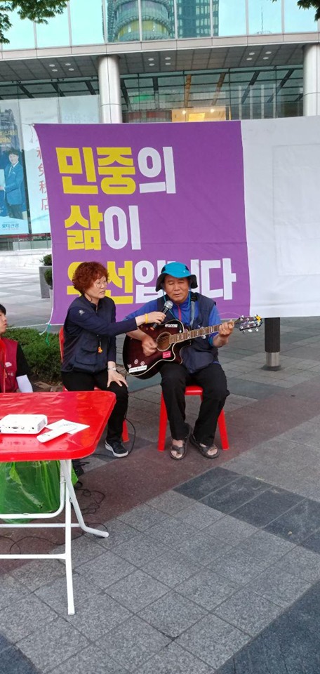 더불어삶 회원 2명이 함께했습니다. 실업유니온에서 예쁜 율동을 선보였고, 콜트악기 방종운 지회장님은 기타 연주를 들려주셨어요. 다양한 방법으로 시민들과 함께하려고 노력 중입니다^^