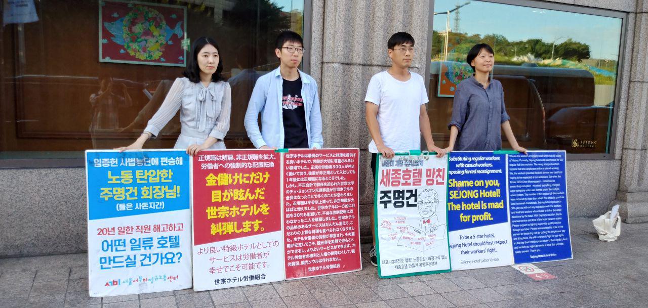 시내 한복판에 위치한 세종호텔. 호텔이라고 하면 화려하고 아늑한 분위기 속에서 고객들에게 최상의 서비스를 제공하는 곳이 떠오릅니다. 하지만 세종호텔 노동자들은 호텔에서 일하고 정상적인 노동조합 활동을..