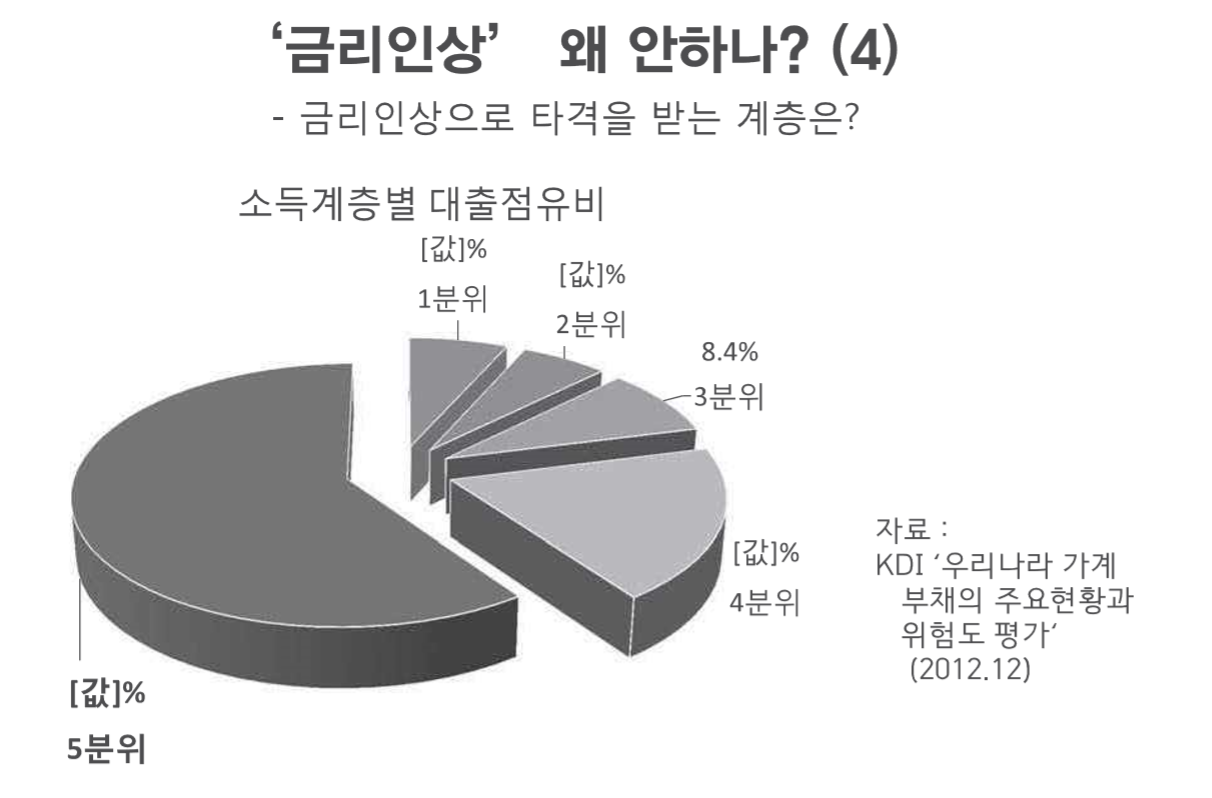 저소득층은 대출을 받고 싶어도 못 받아요. 그런 저소득층이 금리 인상하면 금리부담이 더 크다는 주장은 악의적인 거짓말이죠.