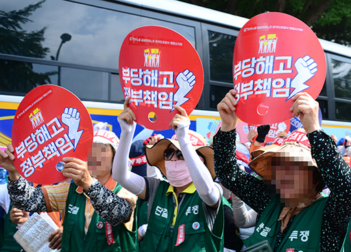 "문재인 정부의 공공부문 정규직화 가이드라인이 없었더라면... 우리는 사실 그냥 대법원 판결 받아서 도로공사 직원으로 들어가면 되는 상황이었습니다. 그런데 공사 측에서는 정부 가이드라인 따라서 자회사를 설립하고 수납원들에게 자회사 이적을 강요했어요. 그래서 불법파견과 자회사 전환을 거부한 1500명 노동자의 대량해고 사태가 발생한 겁니다. 우리는 정부의 노동정책 때문에 명백한 피해를 입은 사람들입니다."