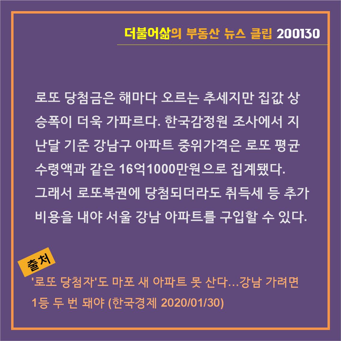 그래서 로또복권에 당첨되더라도 취득세 등 추가비용을 내야 서울 강남 아파트를 구입할 수 있다.