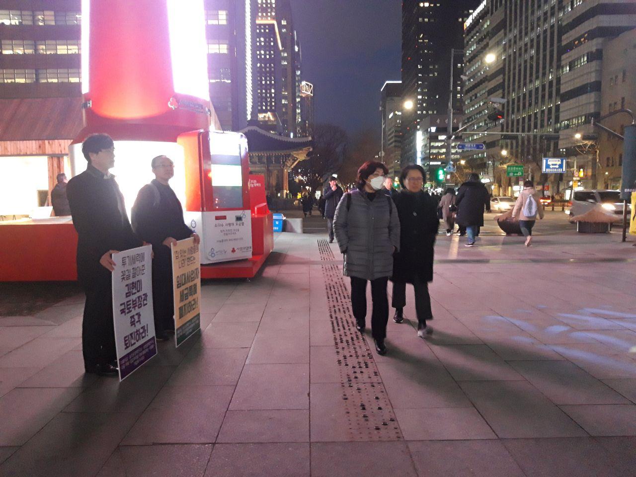 더불어삶, 송기균경제연구소, 송현경제연구소 등 여러 시민단체가 연합해서 마련한 이번 피켓 시위는 지난달 29일 광화문광장과 2월 2일 용산역 앞에서 진행됐다.