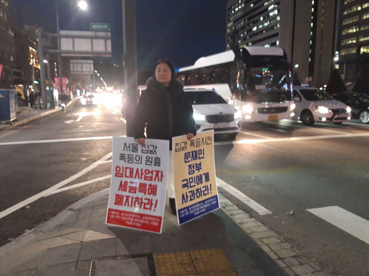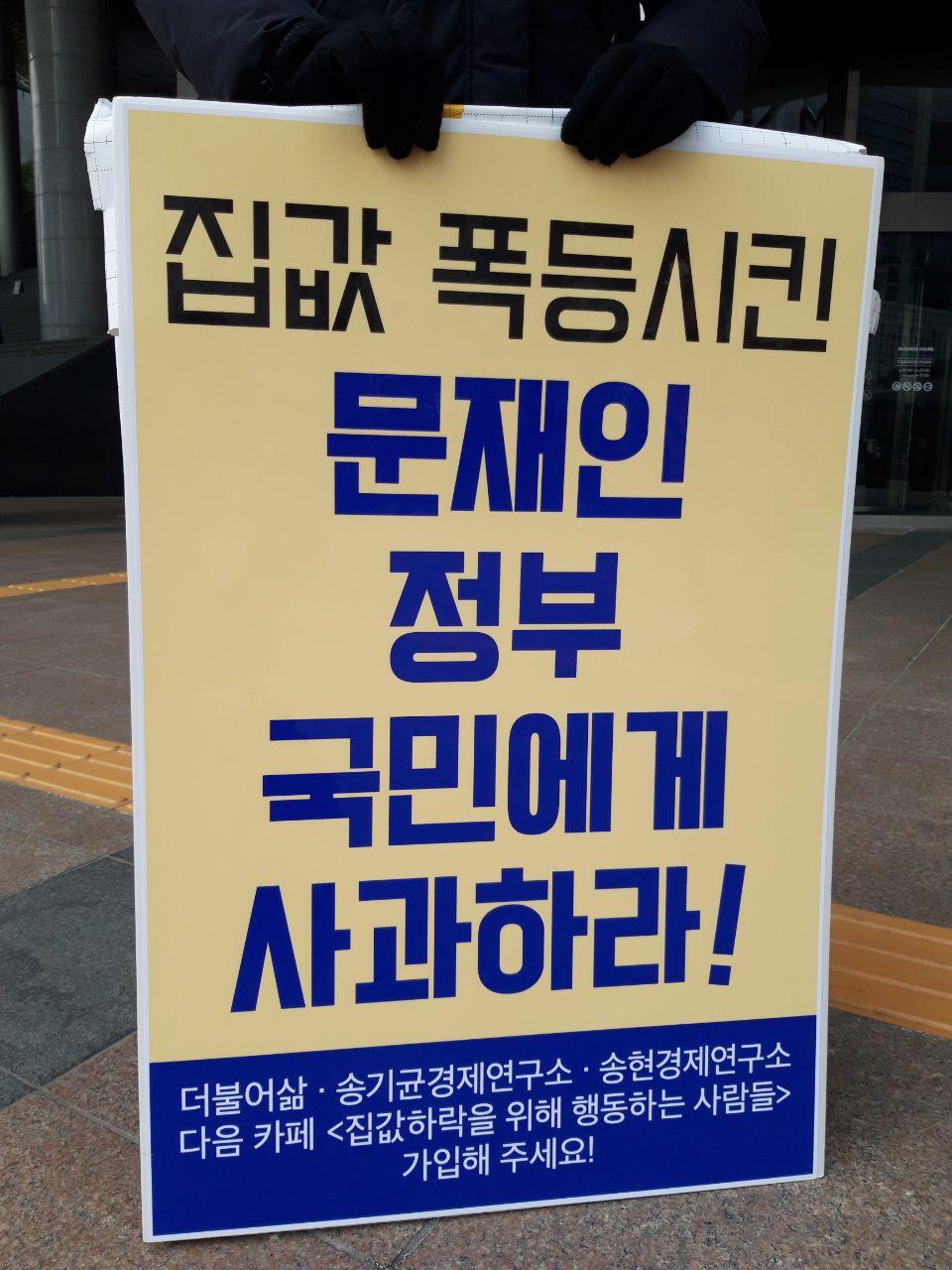 지난해 12.16부동산대책이 발표된 지 한 달 반. 집값 폭등에 대해 정부가 책임져야 한다고 주장하는 시민단체 회원들이 피켓을 들고 거리로 나섰다.