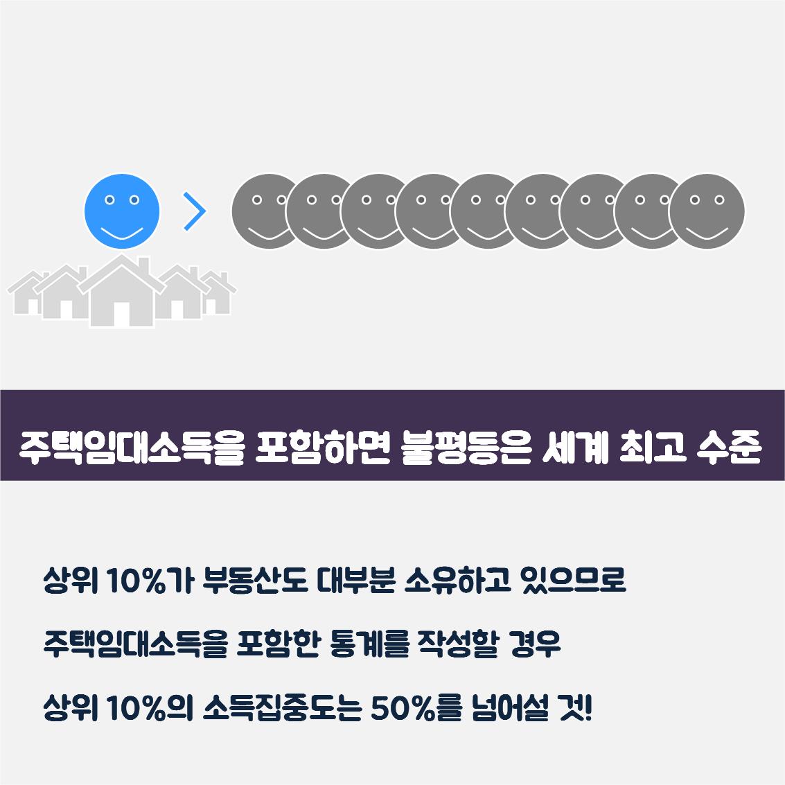 주택임대소득을 포함할 경우 상위 10%의 소득집중도는 50%를 넘어 세계 최고 수준일 것