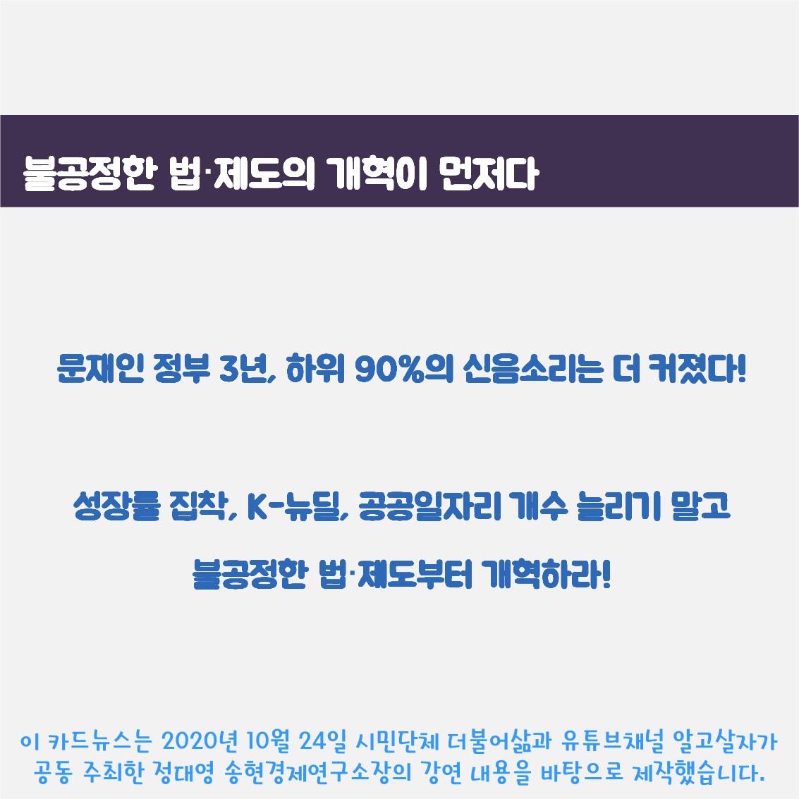 이 카드뉴스는 2020년 10월 24일 시민단체 더불어삶과 유튜브채널 알고살자가 공동 주최한 정대영 송현경제연구소장의 강연 내용을 바탕으로 제작했습니다.