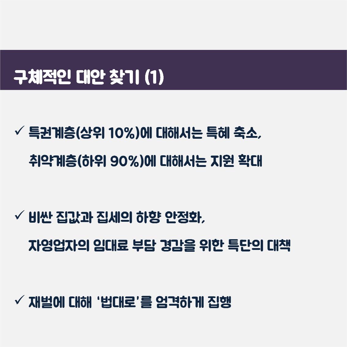 * 특권계층(상위 10%)에 대해서는 특혜 축소, 취약계층(하위 90%)에 대해서는 지원 확대