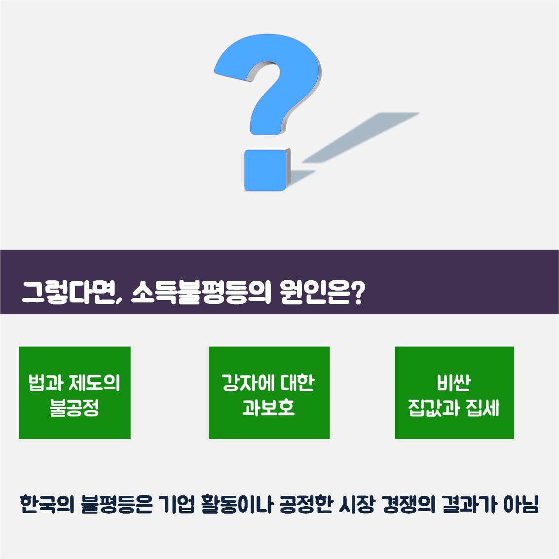 한국의 소득불평등은 법과 제도의 불공정, 강자에 대한 과보호, 비싼 집값 때문에 발생