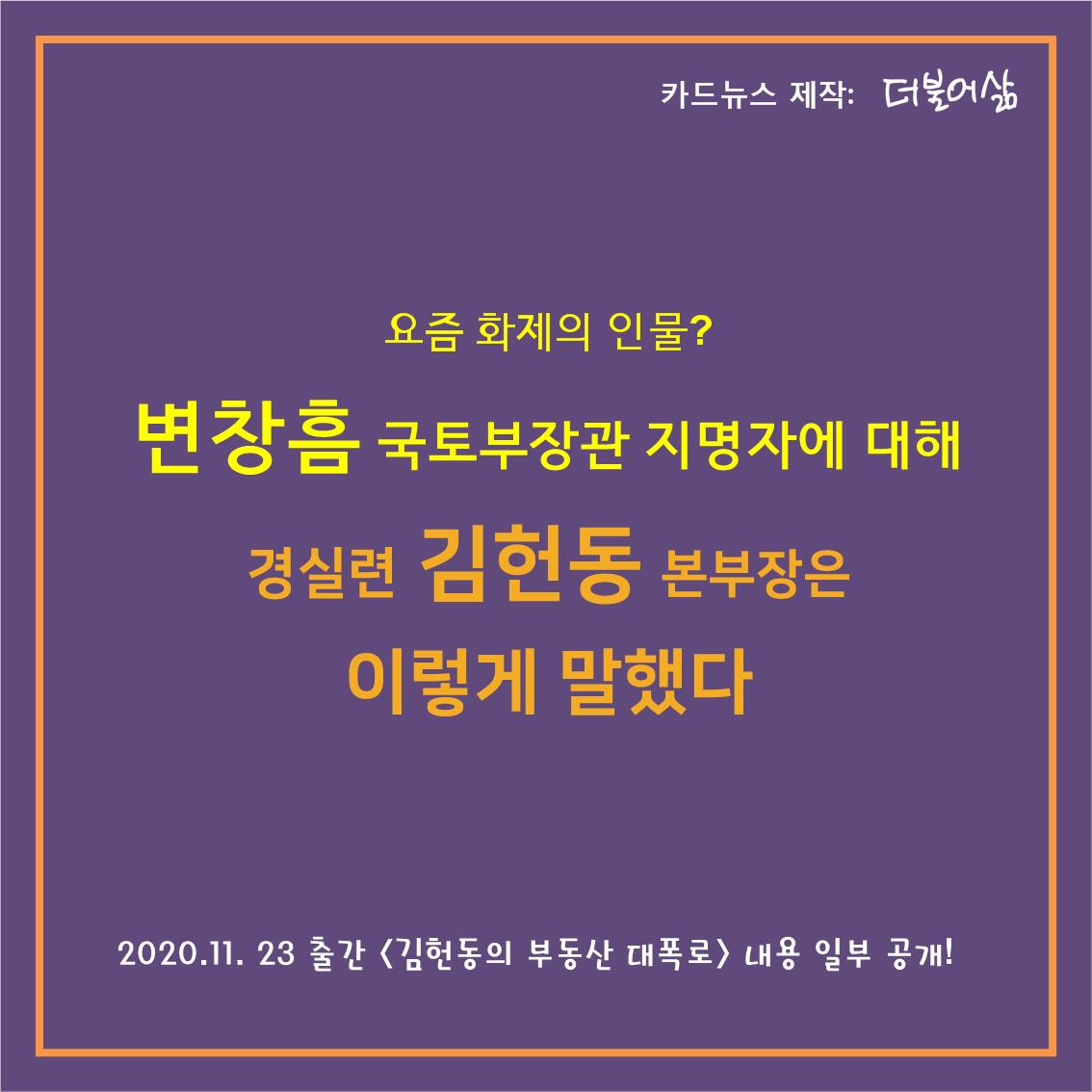 2020.11.23 출간 <김헌동의 부동산 대폭로> 내용 일부 공개!
