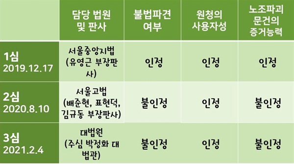 이에 대해 노조 측은 "구두로 지휘‧명령하던 것을 전산시스템으로 옮긴 것"이며 "실질적인 지휘‧명령 여부를 봐야 한다"고 강력하게 항의했다. "같은 공간에서 일하지 않았다"는 재판부 논거에 대해서도 노조 측은 "제조업 불법파견을 심사하던 기준을 서비스업에 기계적으로 잘못 적용한 것"이라고 반박했다.