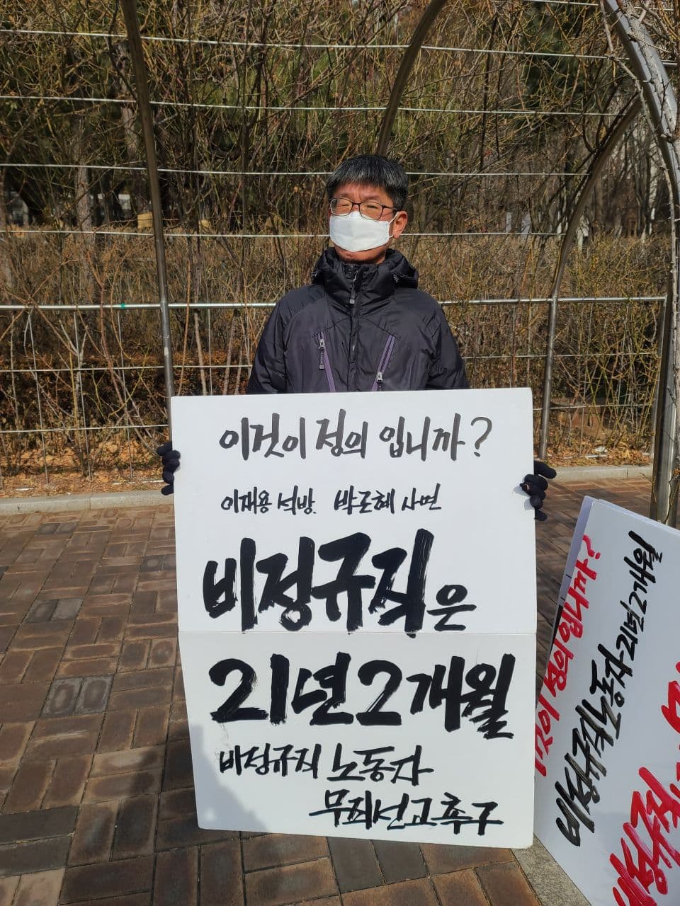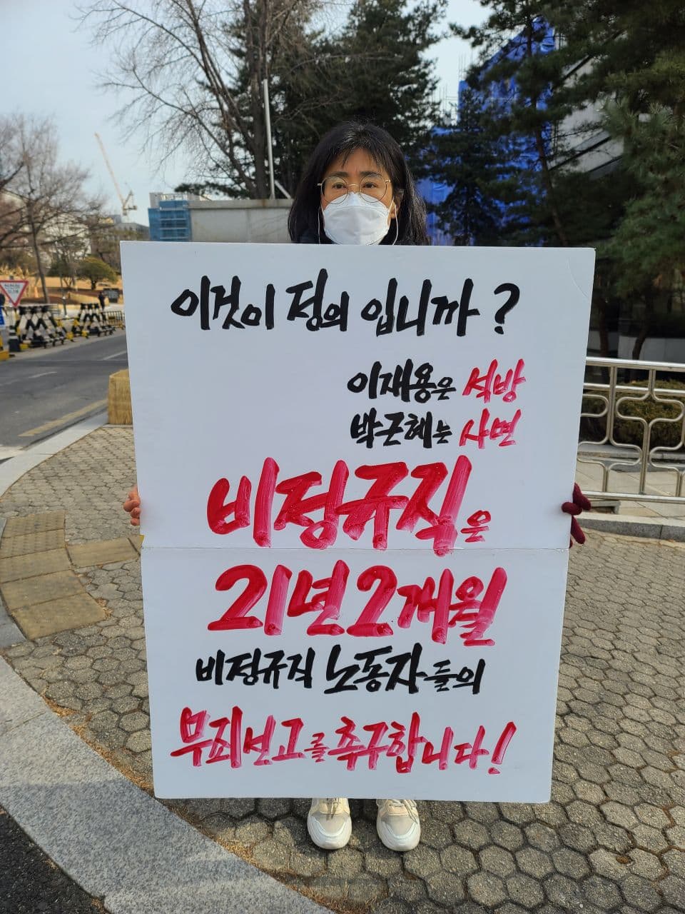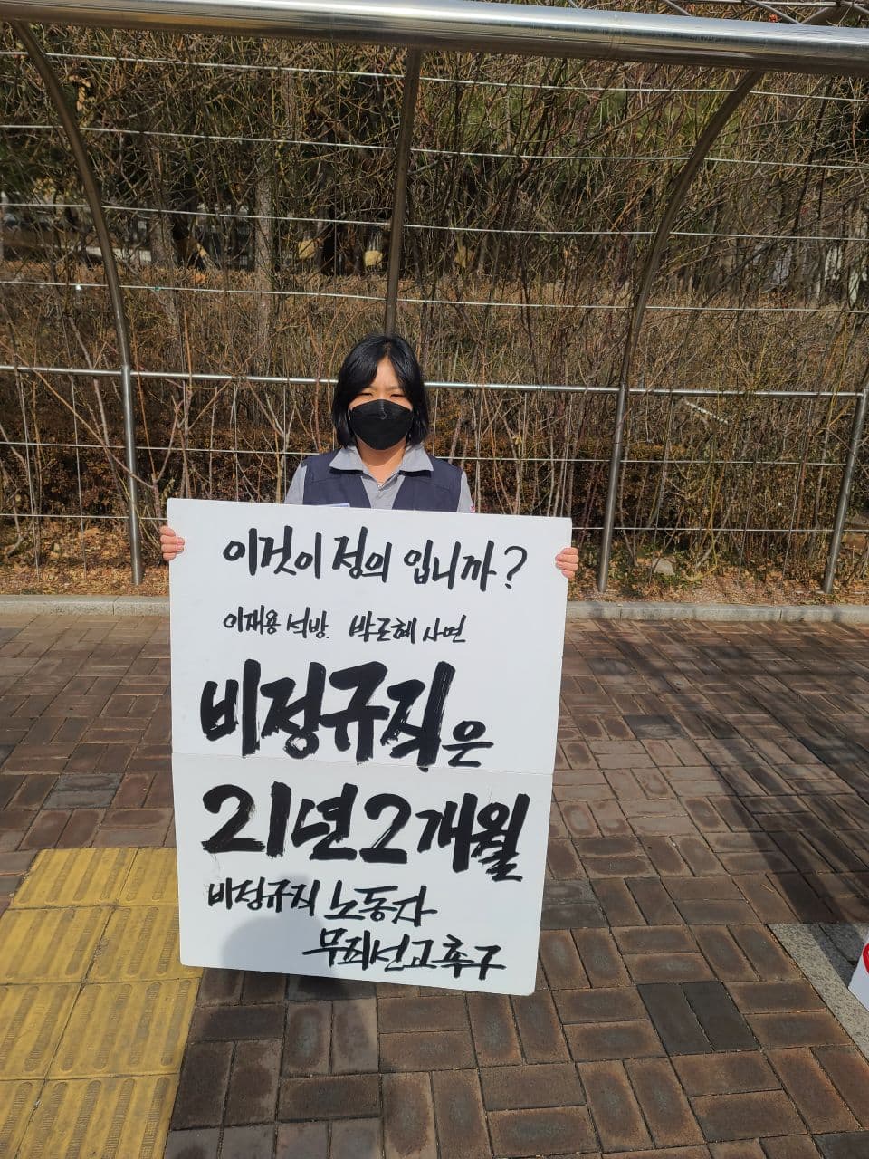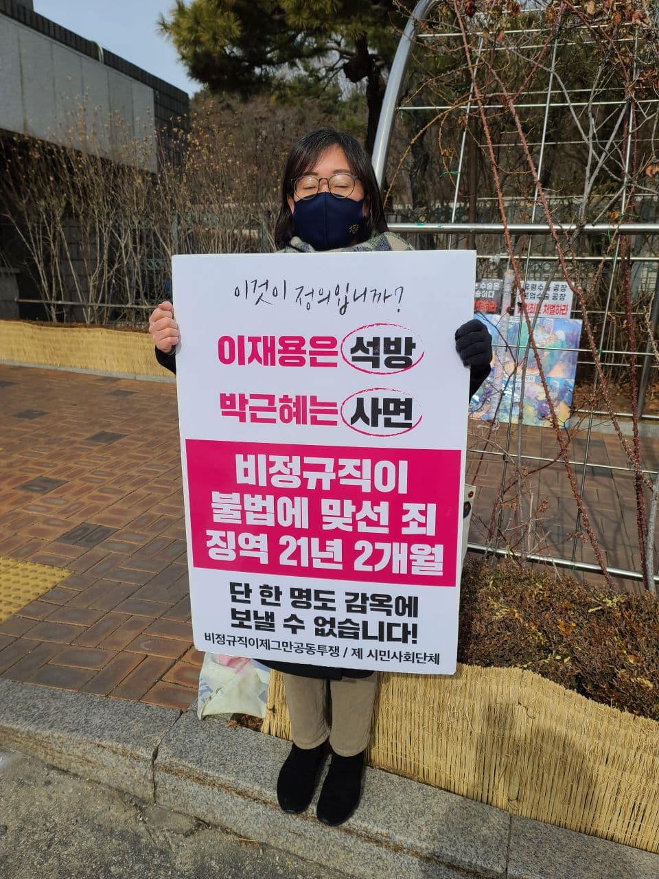 2월 8일까지 법원 앞에서 비정규직 노동자들과 여러 시민사회단체들이 <비정규직 무죄 선고 촉구 1인시위>를 진행했습니다.