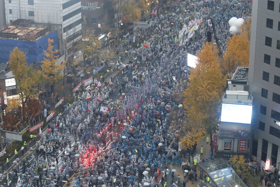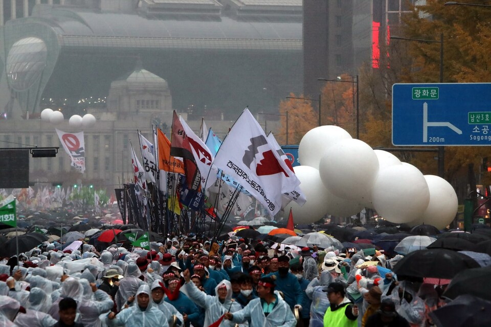 참가자들은 윤석열 정부가 추진하고 있는 노동개악 저지를 외쳤어요.