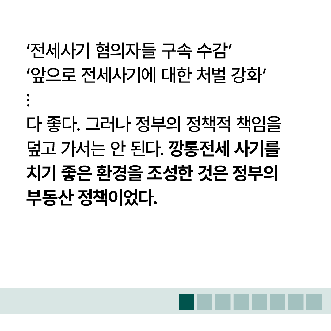제도를 악용하여 계획적으로 사기 행각을 벌인 사람들은 당연히 처벌받아야 한다. 그런데 사기가 발생하기 좋은 제도를 만들고, 나아가 제도의 결함을 알면서도 방치한 정부의 책임에 대해서는 왜 입을 다물고 있는가?