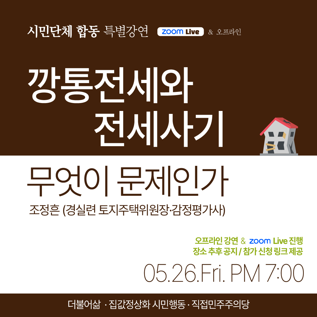 | [동영상][특별강연]깡통전세와 전세사기, 무엇이 문제인가 (0) | 2023.06.26 |