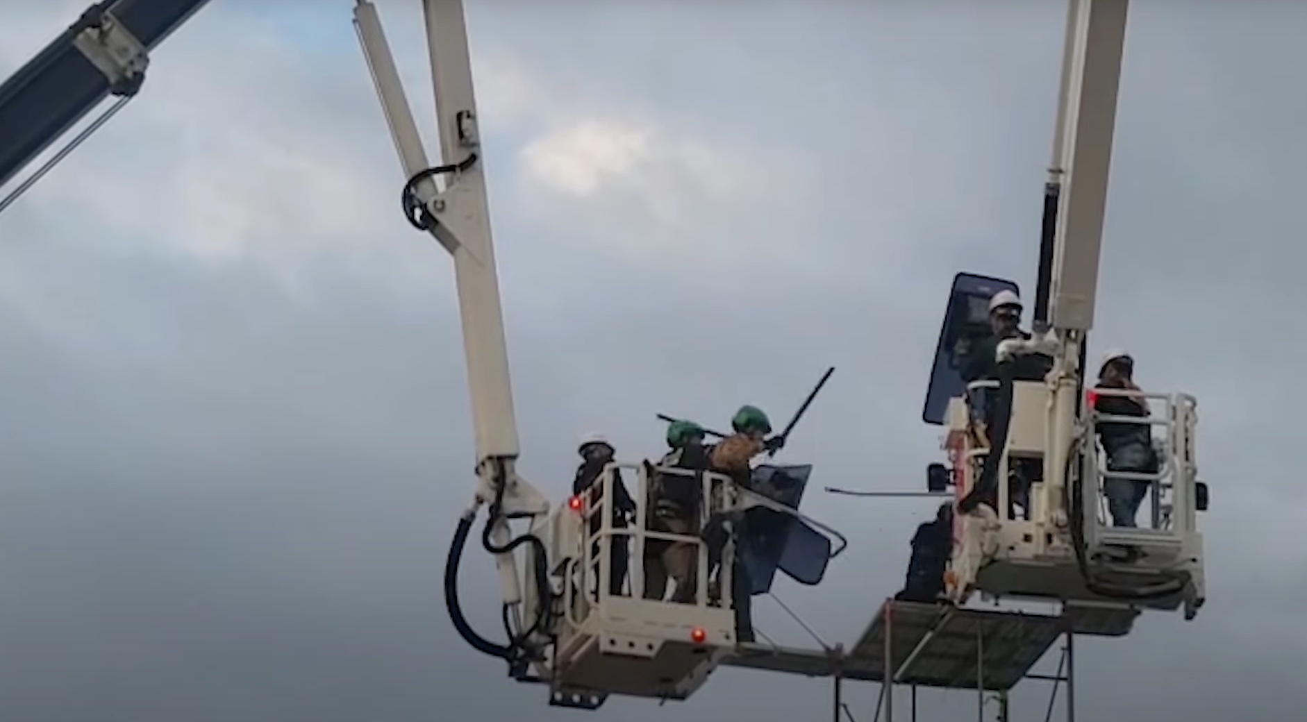 지난달 31일 새벽, 한 평 남짓한 망루 위에서 고공농성 중이었던 노동자 2명(김만재 한국노총 금속노련 위원장, 김준영 한국노총 금속노련 사무처장)을 경찰이 방패와 곤봉을 동원해 폭력 연행했습니다.