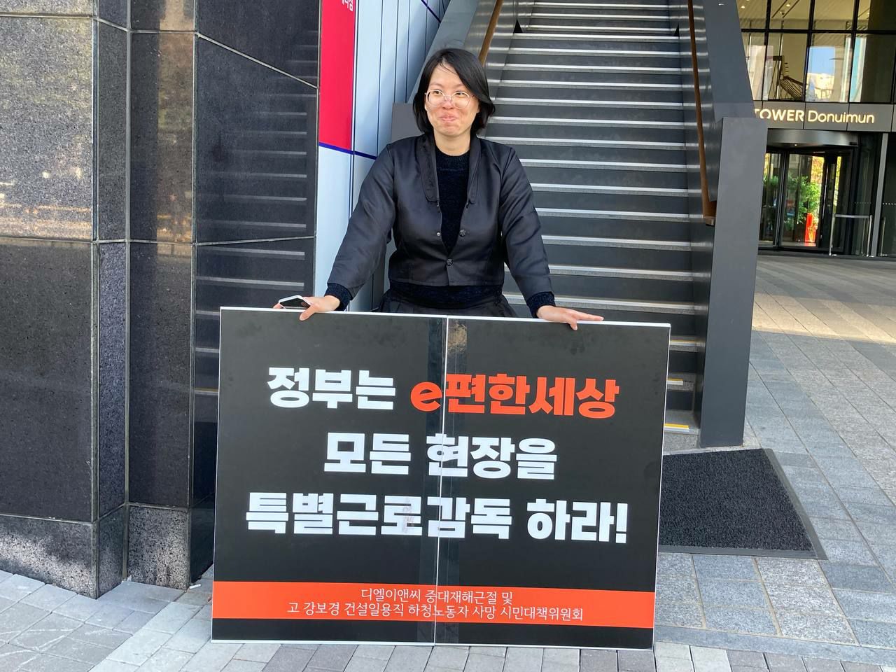 건설일용직 하청노동자 고 강보경님과 노동자들 죽음의 책임자 디엘이앤씨(구 대림산업) 이해욱 회장 규탄 선전전