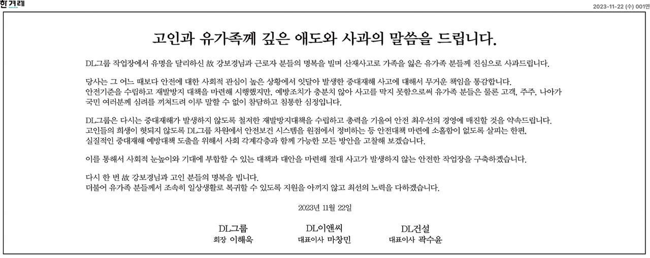 그리고 건설노동자 사망에 대해 원청의 사과를 받아낸 것도 처음이라고 합니다.